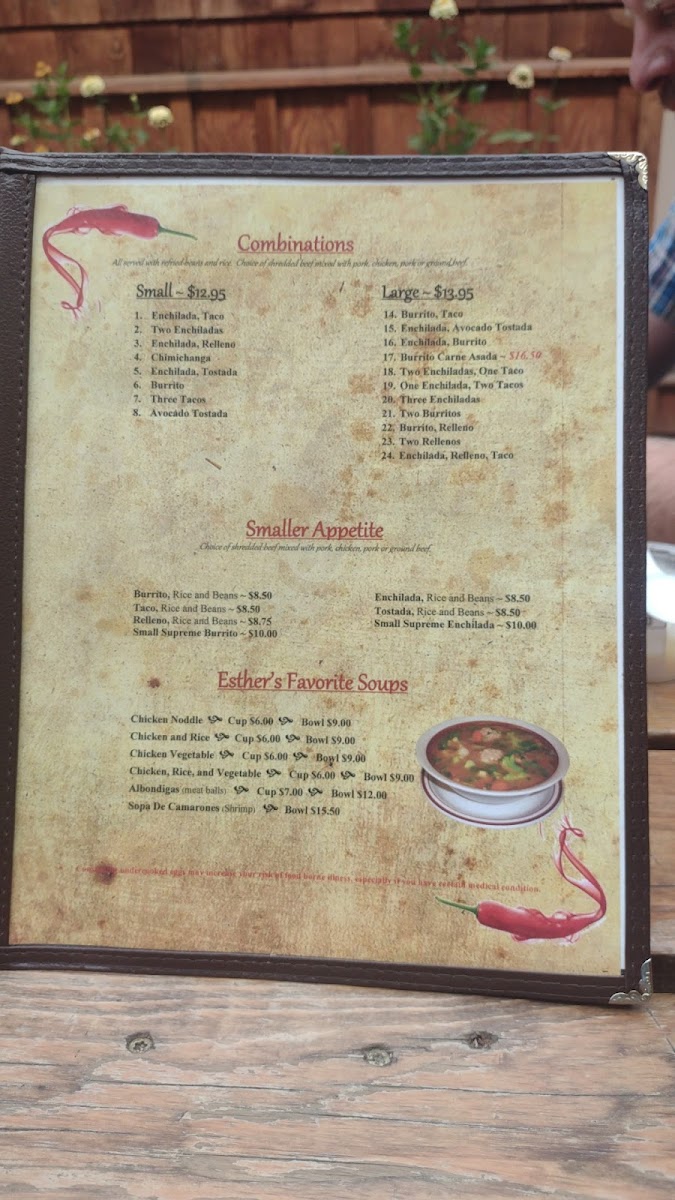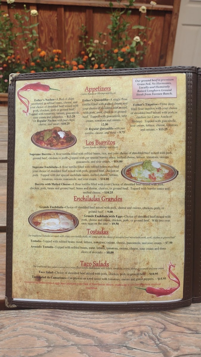 Esther’s Restaurant offers a menu that blends comforting Mexican and American classics with a casual, welcoming vibe. Whether you’re stopping by for a quick bite or settling in to enjoy a relaxed gathering, the selection is designed to suit a variety of moments throughout the day.